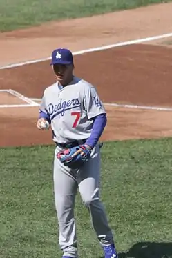 On December 10, the Dodgers traded second baseman Dee Gordon, starting pitcher Dan Haren, utility infielder Miguel Rojas and a player to be named later or cash to the Miami Marlins in exchange for starting pitcher Andrew Heaney, reliever Chris Hatcher, utility player Enrique Hernández and minor league catcher/infielder Austin Barnes. They then sent Heaney to the Los Angeles Angels of Anaheim for second baseman Howie Kendrick.[31] Lavarnway was designated for assignment to make room on the roster,[32] and was later claimed off waivers by the Chicago Cubs.[33]