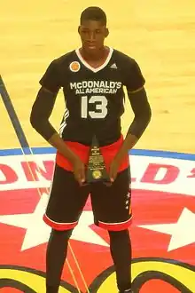 On March 10, 2015, Simmons was named the Morgan Wootten Award winner, given annually to the best male McDonald's All-American player who exemplifies outstanding character, exhibits leadership and embodies the values of being a student-athlete in the classroom and in the community. In doing so, he joined Austin Rivers (2011) as the only Florida high schoolers to win the award.[8] In the week prior to the game Diamond Stone committed to Maryland.[9] Also, Jaylen Brown made news that week for a stop sign violation, but his participation in the game was not in jeopardy.[10] Henry Ellenson endured a broken hand on March 20 in the Wisconsin Interscholastic Athletic Association Division 2 semifinals,[11] and he did not play in the McDonald's All-American game.[12][13]