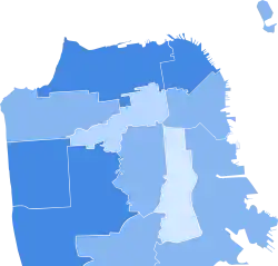 ![]() Results by supervisorial district Lee: <40% 40–50% 50–60% 60–70% | |||||||||||||||||||||||||