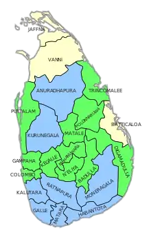 ![]() Polling divisions won by ■ – UNFGG ■ – UPFA ■ – TNA | |||||||||||||||||||||||||||||||||||||||||||||||||||||||||||||||||||||||