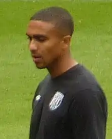 The next trio to arrive were all Portuguese: midfielder Paulo Tavares and left-back Kiko, both from Vitória Setúbal, and striker Carlos Saleiro from Oriental.[8] A ninth new arrival followed, Chris Mbamba, a Zimbabwean-born former Sweden under-17 international winger from Norwegian 2. divisjon club HamKam.[9] A pair of English players then joined the club, former Premier League veteran winger Jerome Thomas and 22-year old former Blackburn Rovers forward Anton Forrester.[10] Bookmakers made Vale second favourites for relegation, though Smurthwaite intimated that he expected the club to reach the play-offs.[11][12] Andy Smith was confirmed as the club's new first team coach whilst the club decided to not hire Peter Farrell after all; Farrell only found out the news on his future after he heard it reported on the radio, and said "It would have been more respectful if someone had the decency to ring me up rather than leave it for 10 days".[13] The club's Player of the Year, Anthony Grant, then submitted a transfer request.[14] The playing squad however continued to grow, with a 12th signing, Monaco reserve team captain Sébastien Amoros, signing a 12-month contract.[15] The signing of 20-year old midfielder Nathan Ferguson then took the club to 13 new players, and Ribeiro said he wanted to further expand the squad by securing the services of veteran trialist Nathan Tyson.[16][17] However he lost a player, as right-back Adam Yates was ruled out of action for seven months with an ankle cruciate ligament injury.[18] Ribeiro broke with tradition by naming three players as joint-captains: goalkeeper Jak Alnwick, veteran full-back Ben Purkiss, and star midfielder Anthony Grant.[19]