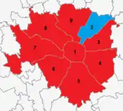 ![]() Result of second round voting by Milan municipalities. Red municipalities are those with most votes for Sala and Azure those for Parisi. | |||||||||||||||||||||||||