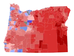 Brown won 3 of the state's 5 congressional districts, including the swingy Oregon's 4th congressional district held by Peter DeFazio, which he represents heavily democratic Benton County and Lane County, both college towns, and the strongly Republican south coastal counties.