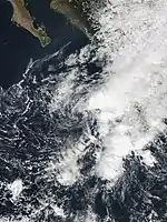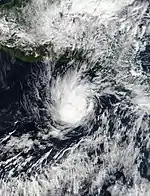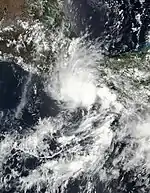 On June 4, the National Hurricane Center began monitoring an area for possible development.[18] Over the next few days, the chances of the storm forming were low. Unexpectedly, however, on June 6, advisories began to be issued on Tropical Depression One-E.[19][20] This led the Government of Mexico to issue a Tropical Storm Watch for its coast.[21] On June 7, the watch was removed as the storm weakened slightly.[22] Early on June 8, the storm made landfall in Mexico near the Gulf of Tehuantepec and dissipated.[23]