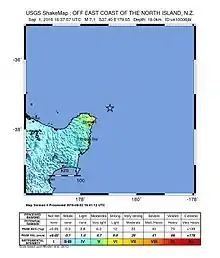 - "M7.1 – 166km NE of Gisborne, New Zealand: ShakeMap". earthquake.usgs.gov. Retrieved 3 September 2016.