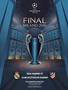 The 2016 UEFA Champions League final was the final match of the 2015–16 UEFA Champions League, the 61st season of Europe's premier club football tournament organised by UEFA, and the 24th season since it was renamed from the European Champion Clubs' Cup to the UEFA Champions League. It was played at the San Siro stadium in Milan, Italy, on 28 May 2016,[5] between Spanish teams Real Madrid and Atlético Madrid, in a repeat of the 2014 final. It was the second time in the tournament's history that both finalists were from the same city. Real Madrid won 5–3 on a penalty shoot-out after a 1–1 draw at the end of extra time, securing a record-extending 11th title in the competition.