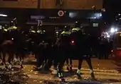 At the time, the Turkish Minister of Family and Social Policies, Fatma Betül Sayan Kaya, was touring Germany.[7] A visit to the Dutch town of Hengelo, close to the German border, had already been scheduled.[7] On 11 March, the Dutch General Intelligence and Security Service received information that Kaya would try to reach Rotterdam by car.[7] She could freely cross the border because of the Schengen Treaty.[8] A crisis centre was established on the twenty-third floor of the Rotterdam World Port Center to coordinate police actions.[7] Earlier, the Turkish consul in Rotterdam had indicated to the Mayor of Rotterdam, Ahmed Aboutaleb, that there were no plans for such a visit.[7] It now proved impossible to contact the consul, which gave Aboutaleb the conviction that the consul knew of Kaya's attempt.[7] A motorcade was intercepted but the car with the minister managed to drive away.[7] It reached a small yard at the rear of the Turkish consulate.[7] The Dutch police stopped Betül Sayan Kaya's entourage just metres from the Turkish consulate building.[11] About twenty police officers, forming a special forces unit, the Dienst Speciale Interventies, masked and equipped with body armour and automatic weapons, arrested ten members of Kaya's bodyguard, on suspicion of illegally carrying firearms.[7] A German source had indicated they had obtained a German weapons permit.[8] No arms were discovered.[7] Two other men were also arrested, who later proved to be the Deventer Turkish consul and the chargé d'affaires of the Turkish embassy.[8] They in principle enjoyed diplomatic immunity.[8] The twelve arrested men were detained for two hours and their passports were seized.[8] A stand-off ensued for several hours in which the Turkish minister refused to leave the car.[7] Just after midnight, a special heavy tow truck, a lift flatbed, was driven into the yard and prepared to vertically hoist the 3.5 tonne car onto the flatbed, with the minister still in it, to transport her back to Germany.[7] The minister now left the car and demanded entrance to the consulate invoking the Vienna Convention on Diplomatic Relations.[7] The Dutch police had orders to arrest the minister if necessary.[12] Ultimately, she gave in to the police demands to leave the country. At the time, many news sources assumed that she had been declared persona non grata.[13] She was, loudly protesting, taken to another car, a black armoured Mercedes,[8] by masked Dutch police officers who accompanied her to a police station at Nijmegen near the Dutch–German border.[7] Her passport was seized.[8] She was not allowed to leave the station for one and a half hours, while being reunited with the ten bodyguards.[7][8] She returned to Germany under German escort.[7] Sporadic rioting occurred among the about a thousand pro-Erdoğan protesters who had come to the Turkish consulate. They were met by Dutch riot police, who arrested twelve people for violent assault and not following police instructions.[14][15][16] Kaya's passport was returned on 12 March, 18:00, to the Turkish consul.[8] In April 2017, Kaya's lawyer said they would file a complaint against the Dutch government at court claiming that her expulsion from the Netherlands was illegal because she was not given a written statement of the reasons for the expulsion.[17] However, on 2 May the case was dropped when it transpired that Kaya had never been formally declared persona non grata and that from a judicial point of view she had left the Netherlands voluntarily.[18]