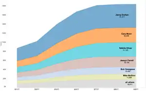 Then-incumbent mayor Ed Murray initially sought re-election, but ended his campaign amid allegations of sexual abuse which led to his resignation in September 2017.[2][3] In the top-two primary, leading candidates had included Durkan, Moon, Nikkita Oliver, former State Representative Jessyn Farrell, former Mayor Mike McGinn, and State Senator Bob Hasegawa. Fifteen lesser-known candidates were also on the primary ballot.[4][5]