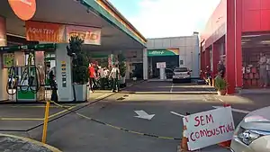 On 23 May, airports started to suffer a lack of fuel; Infraero announced that airports like Congonhas and Recife International only had fuel for that day.[24] As a result of trucks halting fuel deliveries to gas stations and food deliveries to markets and other establishments, prices started to rise. In Recife, gasoline reached the price of R$8.99 (approximately US$2.45)[25] and in Rio de Janeiro a bag of potatoes could cost as much as R$500 (approximately US$136.30).[26] The same day, Abcam announced it would let trucks with livestock and medicine pass through the blockades until Friday of the same week (25 May).[27]