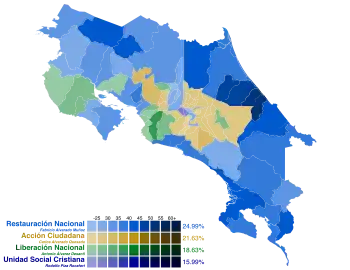 The previously dominant National Liberation Party suffered its worst results to date, ending third in the presidential run for the first time in its history with its candidate former Legislative Assembly President Antonio Álvarez Desanti winning only 18%. Other notable candidates were lawyer and entrepreneur Rodolfo Piza from the center-right Social Christian Unity Party with 16% and right-wing populist Juan Diego Castro with 9%.
