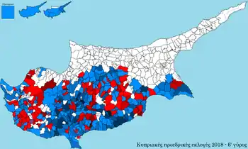 Presidential elections were held in Cyprus on 28 January 2018.[1] As no candidate received a majority of the vote in the first round, a run-off was held on 4 February between the top two candidates, incumbent President Nicos Anastasiades of the Democratic Rally (DISY) and Stavros Malas of the Progressive Party of Working People. Anastasiades emerged as the winner with 55.99% of the vote.[2]