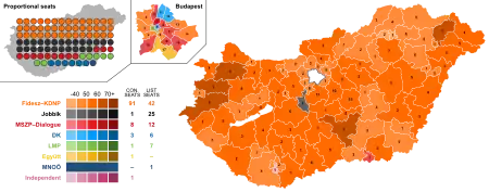 | Fidesz–KDNP | 2,824,551 | 49.27 | 42 | 2,636,201 | 47.89 | 91 | 133 | 0 | |