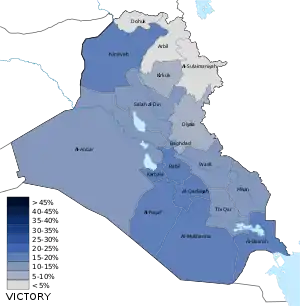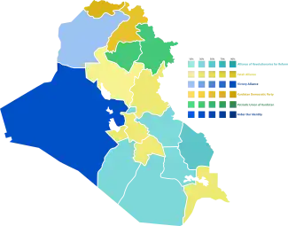 Parliamentary elections were held in Iraq on 12 May 2018.[4] The elections decided the 329 members of the Council of Representatives, the country's unicameral legislature, who in turn will elect the Iraqi president and prime minister.[5] The Iraqi parliament ordered a manual recount of the results on 6 June 2018.[6] On 10 June 2018, a storage site in Baghdad housing roughly half of the ballots from the May parliamentary election caught fire.[7]