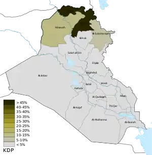 | Kurdistan Democratic Party | 873,645 | 8.41 | 25 | 0 | |