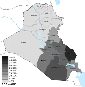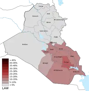 Members of the Council of Representatives are elected through the open list form of party-list proportional representation, using the 18 governorates of Iraq as the constituencies. The counting system uses the modified Sainte-Laguë method with a divisor of 1.7[12] which is considered as a disadvantage to smaller parties.[13] Eight seats remain reserved for minority groups at the national level: five for Assyrians and one each for Mandaeans, Yazidis, and Shabaks.[14][15] However, the Council of Representatives voted on 11 February 2018, to add an extra seat for minorities, in the Wasit Governorate for Feyli Kurds, making the total number of parliamentarians equal to 329.