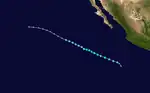 October yielded an above-average number of tropical cyclones with three named storms forming – Tara, Vicente, and Willa.[30] Sergio became the eighth system to obtain Category 4 intensity during the season, breaking the old record of seven which was set in 2015.[31] Rosa and Sergio both made landfall on the Baja California Peninsula during October, bringing gale-force winds and rain to the region before impacting western Mexico.[32][33] Willa became the season's third Category 5 hurricane before making landfall in Sinaloa, Mexico, in late October.[30] The cyclone brought strong winds to the area where it made landfall and dropped torrential rainfall throughout the region.[34] Tropical Storm Vicente caused severe flooding and landslides in western Mexico at the same time as Willa, compounding the latter's effects in some areas.[35] November featured the season's last system, Tropical Storm Xavier, which dissipated on November 6, marking the end of the season.[36]