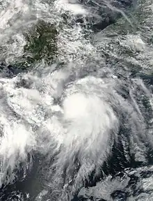 Tropical Storm Carlotta warranted the issuance of tropical storm watches and warnings along the southern coast of Mexico.[16] Carlotta caused severe flooding in the states of Aguascalientes, Guerrero, Michoacán, Oaxaca, and Puebla, as well as the Yucatán Peninsula; the storm also killed a total of three people.[52][53][54] A peak rainfall total of 11.2 in (285 mm) was recorded in Melchor Ocampo, Michoacán.[55] Carlotta and two other systems dropped 3–20 in (70–400 mm) of rain across the Yucatán Peninsula, resulting in severe flooding.[56] In Oaxaca, dwellings, a hospital, utilities, and roads and bridges sustained wind and flood damage.[57][58][59] Multiple rivers overflowed their banks in Michoacán, flooding several homes and damaging water pumps.[60][61][62] Carlotta also caused several landslides throughout the state.[61] Insurance claims related to the storm reached US$7.6 million (MX$156 million) statewide.[63] Another 12 houses were flooded in Aguascalientes.[53]