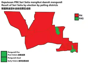 PKR's Halimey Abu Bakar, got 13,725 votes, defeating PAS’ Dr Halimah Ali who got 9,698, getting a majority of 4,027 votes thus retaining the seat for PKR and Pakatan Harapan.[8] PAS significantly increased its share of vote, which was credited to the fact BN not contesting the seat.[9]