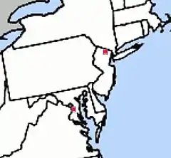 ![]() Map showing the two outbreak locations, in Maryland and New Jersey | |