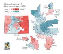 Half of the seats of the Colorado Senate and all of the seats of the Colorado House of Representatives were up for election in 2018. Democrats won control of the senate and retained control of the house of representatives.