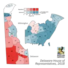 Half of the seats of the Delaware Senate and all of the seats of the Delaware House of Representatives were up for election in 2018. Democrats retained control of both chambers.