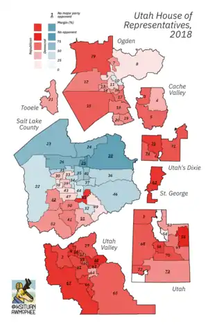 Half of the seats of the Utah State Senate and all of the seats of the Utah House of Representatives were up for election in 2018. Republicans retained control of both chambers.