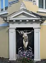 Making a martyr – distraction by polarization (revealed Easter 2018), street art by AFK,[1] visualizing the political drama leading to resignation of Minister of Justice Sylvi Listhaug.