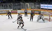 The 2019–20 Liiga season was the 45th season of the Liiga (formerly SM-liiga), the top level of ice hockey in Finland, since the league's formation in 1975. The last two game days (12 and 14 March 2020) of the regular season were scheduled to be played in front of an empty arena due to the Finnish government advising that all public events with more than 500 attendees would be cancelled or postponed.[1] On 13 March, the rest of the season, which included the final round of the regular season and all of playoffs, was cancelled due to the COVID-19 pandemic.[2]