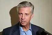 SeptemberWith expanded rosters allowed starting on September 1, the team added four pitchers (Jhoulys Chacín, Travis Lakins, Ryan Weber, and Héctor Velázquez) and two position players (catcher Juan Centeno and outfielder Gorkys Hernández).[97] Following the end of the Triple-A season, on September 4 the team added four additional pitchers (Colten Brewer, Trevor Kelley, Bobby Poyner, and Mike Shawaryn).[97] September 1, at Los Angeles Angels (cont'd) Boston won the third game of the series, 4–3. Xander Bogaerts and J. D. Martinez each homered, with Bogaerts going 3-for-4 with three RBIs. Brandon Workman recorded his 10th save of the season. Red Sox won the series 2–1 (15–19 runs) September 3–5, vs. Minnesota Twins In the first game of the series, Minnesota took a 6–0 lead through the middle of the fifth inning. Boston closed to 6–4 at the end of the fifth, and to 6–5 at the end of the eighth. Despite a leadoff single in the bottom of the ninth, the Red Sox were unable to score again. Rick Porcello fell to 12–11 on the season, while Rafael Devers and Andrew Benintendi both homered. Boston won the second game of the series, 6–2, as Mookie Betts had two home runs, including one to leadoff the game. Eduardo Rodríguez got his 17th win of the season, and Brandon Workman got his 11th save. The final game of the series was a 2–1 win by the Twins. The Red Sox had the tying run on base in the ninth inning, but Devers was thrown out at the plate trying to score on a two-out double that J. D. Martinez hit off of the Green Monster. Boston's run came on a Betts homer that hit Pesky's Pole. Red Sox lost the series 1–2 (12–10 runs) September 6–9, vs. New York Yankees ![]() Dave Dombrowski was dismissed shortly after the September 8 loss to the Yankees. Jhoulys Chacín got the start in the first game of this four-game series, retiring all six batters he faced while striking out four. Powered mainly by a four-run fourth inning, Boston went on to win, 6–1, while using seven pitchers. Mitch Moreland hit his 15th home run of the season. The Yankees won the series' second game, 5–1, also mainly due to a four-run fourth inning. Boston's run came on a ninth-inning homer by J. D. Martinez. New York won the third game of the series, 10–5, scoring first and never trailing. Jackie Bradley Jr. and Mookie Betts each homered. Following the September 8 loss to the Yankees, which dropped the Red Sox to 76–67 on the season, the team dismissed president of baseball operations Dave Dombrowski.[98] The team announced that baseball operations would be run by assistant general managers Brian O'Halloran, Eddie Romero, and Zack Scott on an interim basis.[98] The final game of the series was a 5–0 Yankees win, which eliminated the Red Sox from AL East title contention.[99] Prior to the game, David Ortiz threw out the ceremonial first pitch.[100] Red Sox lost the series 1–3 (12–21 runs) September 10–12, at Toronto Blue Jays The first game of the series was a 4–3 win by Toronto, after Boston had held leads of 1–0 and 3–2. Mookie Betts hit his 28th home run of the season. The second game of the series was an 8–0 win by the Blue Jays, extending Boston's losing streak to five games. The Red Sox only collected two hits, one each by Brock Holt and Rafael Devers. Boston won the final game of the series, 7–4, with Blue Jay starter and former Red Sox pitcher Clay Buchholz taking the loss. Boston used nine pitchers, with Brandon Workman notching his 12th save of the season. Red Sox lost the series 1–2 (10–16 runs) September 14–15, at Philadelphia Phillies In this weekend inter-league series, Boston won the first game, 2–1. The winning run scored on a sacrifice fly by Andrew Benintendi in the top of the ninth inning. Boston also won the second game, 6–3. Christian Vázquez had a third-inning grand slam and a sixth inning solo homer. Red Sox won the series 2–0 (8–4 runs) September 17–19, vs. San Francisco Giants The opening game of this three-game inter-league series featured the Giants' Mike Yastrzemski, grandson of Hall of Fame inductee Carl Yastrzemski of the Red Sox; the younger Yastrzemski hit his 20th home run of the season in the fourth inning.[101] San Francisco built a 5–1 lead through four innings, which became a 5–5 tie at the end of the sixth. With no further scoring in regulation, the game went into extra innings. The teams traded runs in the 13th inning, and the Giants pushed across a run in the 15th inning, for a 7–6 win. With a game duration of 5 hours and 54 minutes, the teams used a total of 24 pitchers, tying the major league record,[102] and 50 players total.[103] The second game of the series was an 11–3 win by the Giants, the 2,000th win of manager Bruce Bochy's career.[104] Rafael Devers hit his 30th home run of the season, while Jackie Bradley Jr. hit his 20th. Before the game, a ceremonial first pitch was thrown by Carl Yastrzemski to his grandson Mike.[105] The Red Sox won the final game of the series, 5–4, with Eduardo Rodríguez recording his 18th win of the season. All of Boston's run came in the first two innings. Xander Bogaerts was 2-for-4 with three RBIs, in his first MLB game as a designated hitter. Red Sox lost the series 1–2 (14–22 runs) September 20–23, at Tampa Bay Rays The opening game of this four-game series was won in 11 innings by the Rays, 5–4. With the Rays defending Mitch Moreland's at-bats with four outfielders,[106] he hit two home runs and had all four RBIs for the Red Sox. A win by the Cleveland Indians while Boston's game was in progress eliminated the Red Sox from postseason contention.[107] The second game of the series was again a 5–4 Rays win in 11 innings. Tied 3–3 after nine innings, Moreland homered for Boston to take a 4–3 lead in the top of the 11th. With no outs and a runner on second in the bottom of the 11th, Nate Lowe hit a walk-off home run to give Tampa Bay the win. Xander Bogaerts 