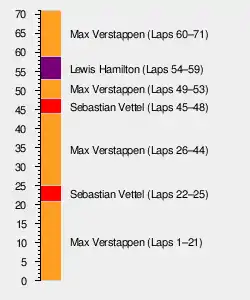 - ^3 – Sebastian Vettel, Charles Leclerc and Lance Stroll were classified as they completed more than 90% of the race distance.[11]