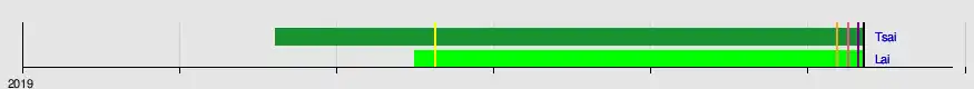 Results of the primary were announced on 13 June. Tsai defeated Lai by approximately 8.6 percentage points, the result was 35.68% for Tsai and 27.48% for Lai.[12][13] She was formally nominated as the Democratic Progressive Party's presidential candidate on 19 June 2019.[14][15]