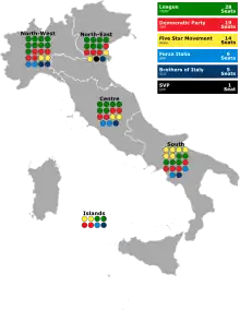 | Party | North-West | North-East | Centre | South | Islands | Source | |