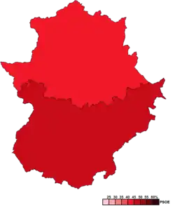 ![]() Constituency results map for the Assembly of Extremadura | ||||||||||||||||||||||||||||||||||||||||||||||||||||||||||||||||||||||||||||||||||