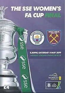 The 2019 Women's FA Cup Final (known as the SSE Women's FA Cup Final for sponsorship reasons) was the 49th final of the Women's FA Cup, England's primary cup competition for women's football teams. The showpiece event was the 26th to be played directly under the auspices of the Football Association (FA).