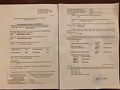 The decision on nomination is taken by a majority of votes from the total number of members of the highest body of the republican public association. The compliance of a candidate with the requirements of the Constitution and the Constitutional Act "On Elections" is carried out by the Central Election Commission within five days from the date of submission of an extract from the protocol of the meeting of the highest body of the republican public association after nominating the candidate, together with the candidate's consent to run for presidency and a document confirming that the candidate has paid the electoral contribution.[25]