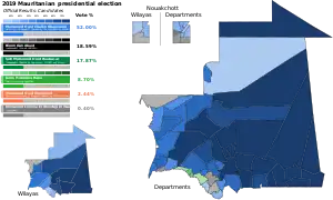 ![]() Map of the results of the Mauritanian presidential election by wilaya and moughataa. | |||||||||||||||||||||||||||||||||||||||||