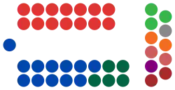 In the Legislative Council, 21 seats were up for election. The Coalition won eight seats, Labor seven, the Greens and One Nation each picked up two seats, whilst the Shooters, Fishers and Farmers Party and Animal Justice Party claimed one seat each.[4] One Nation's lead candidate Mark Latham, who led the Labor Party to defeat at the 2004 federal election, was elected to the Council.[4] In total the Coalition held 17 seats, Labor 14 and crossbenchers of other parties held 11.[4] The result left the Berejiklian Government needing at least five votes to pass legislation, up from the two they needed in the previous Council.[4]
