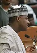 Upon the opening of the 9th Nigeria National Assembly, Femi Gbajabiamila (APC-Surulere I) was elected as Speaker of the House of Representatives while Ahmed Idris Wase (APC-Wase) and Alhassan Doguwa[lower-alpha 4] (APC-Tudun Wada/Doguwa) became Deputy House Speaker and House Majority Leader, respectively.[2][3] Gbajabiamila named Ndudi Elumelu (PDP-Aniocha/Oshimili) House Minority Leader despite the PDP having nominated Kingsley Chinda (PDP-Obio/Akpor);[4] Elumelu and the other PDP members named by Gbajabiamila as minority leadership were suspended from the PDP and it was not until February 2021 when the suspensions were lifted and party crisis ended.[5]