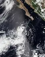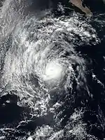 On August 18, a tropical wave moved off Africa. It inconspicuously crossed the Atlantic and emerged into the East Pacific on August 27. A broad area of low pressure formed in association with increased convective activity, leading to the formation of Tropical Storm Juliette by 00:00 UTC on September 1. The newly formed storm quickly organized amid favorable conditions, becoming a hurricane by 12:00 UTC on September 2 and entering a period of rapid intensification. Within a day, Juliette attained its peak at Category 3 intensity with winds of 125 mph (200 km/h). Beyond that time, the cyclone's eyewall collapsed and caused a persistent weakening trend. Juliette degenerated to a remnant low 06:00 UTC on September 7 to the west of Baja California Sur. The low drifted west and dissipated early on September 9.[23]