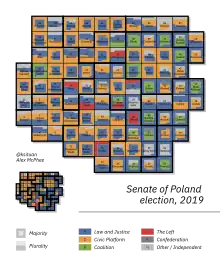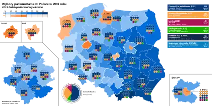 Parliamentary elections were held in Poland on 13 October 2019. All 460 members of the Sejm and 100 senators of the Senate were elected. The ruling Law and Justice (PiS) retained its majority in the Sejm, but lost its majority in the Senate to the opposition. With 43.6% of the popular vote, Law and Justice received the highest vote share by any party since Poland returned to democracy in 1989. The turnout was the highest for a parliamentary election since the first free elections after the fall of communism in 1989.[1] For the first time after 1989, the ruling party controls one house, and the opposition the other.