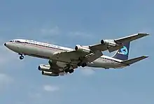 The aircraft involved was a Boeing 707-3J9C, c/n 21128, registration EP-CPP.[2] The aircraft was owned by the Islamic Republic of Iran Air Force and had been leased to Saha Airlines.[3] The aircraft was 42 years old at the time.[4] The aircraft had first flown on 19 November 1976, and was delivered that month to the Imperial Iranian Air Force as 5–8312. It had been transferred to Saha Airlines on 27 February 2000, and was re-registered EP-SHK. It was substantially damaged by an uncontained engine failure on 3 August 2009, whilst on a flight from Ahvaz International Airport to Mehrabad International Airport, Tehran. An emergency landing was made at Ahvaz; the aircraft was subsequently repaired. It was returned to the IRIAF in December 2015 and returned to Saha Airlines in May 2016, registered EP-CPP.[5]