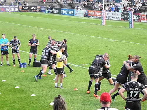The Wolfpack warming up for the round 11 match against Featherstone in April 2019