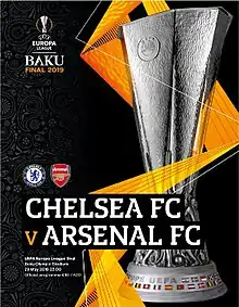 The 2019 UEFA Europa League Final was the final match of the 2018–19 UEFA Europa League, the 48th season of Europe's secondary club football tournament organised by UEFA, and the 10th season since it was renamed from the UEFA Cup to the UEFA Europa League. It was played at the Olympic Stadium in Baku, Azerbaijan, on 29 May 2019.[5] The match was contested between English sides Chelsea and Arsenal, who had beaten Eintracht Frankfurt and Valencia, respectively, in the semi-finals to set up a London derby in the final. It was the tenth tournament final to feature two teams from the same association, the second all-English final, and the first between teams from the same city.