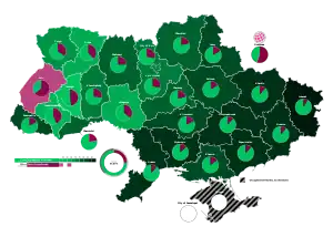 Presidential elections were held in Ukraine on 31 March 2019. As none of the 39 candidates on the ballot received an absolute majority of the initial vote, a runoff was held on 21 April between the top two vote-getters, Volodymyr Zelenskyy, a television personality, and the incumbent president, Petro Poroshenko. According to the Central Election Commission (CEC), Zelenskyy won the second round with 73.22% of the votes.[1][2][3] The election was recognized as free and fair.[4]