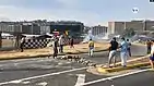At 11:00 am, Maduro's Prosecutor General Tarek William Saab spoke on state-run television saying that Guaidó and his supporters would face "consequences".[56] A National Guardsman loyal to Maduro was injured by a gunshot to the neck at 11:08 am.[45] By 11:12 am, protesters near La Carlota begin to largely disperse and injured begin to appear in clinics minutes later.[45] At 11:42 am, armored VN-4s driven by Maduro loyalists begin to attack protesters, with some protesters being run over by the vehicles.[45][58]