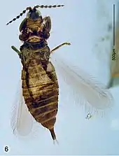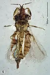- M. Kogan; G. O. Poinar (2019). "Fossil Strepsiptera (Insecta) of the Poinar Amber Collection with description of one new genus and 12 new neotropical species in the families Protelencholacidae, Elenchidae, and Myrmecolacidae". Historical Biology: An International Journal of Paleobiology. 32 (9): 1215–1276. doi:10.1080/08912963.2019.1575375. S2CID 155137097.