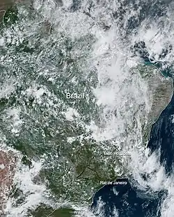 ![]() NOAA satellite imagery shows remnants of the storm over Brazil, taken 27 January 2020 | |