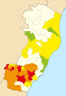 Municipalities with deaths Municipalities in a state of emergency Municipalities with homeless, missing or buried Municipalities with infrastructure damage Unaffected municipalities |