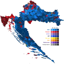 - Of the 66 seats won by the HDZ-led alliance, the HDZ won 62, the Croatian Social Liberal Party won two and the Croatian Christian Democratic Party and Croatian Democratic Alliance of Slavonia and Baranja won one each.