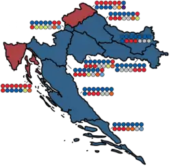 - Of the 16 seats won by the DPMŠ-led coalition, the DPMŠ won eleven, the Croatian Sovereignists three, Croatian Conservative Party one and the Bloc for Croatia one.
